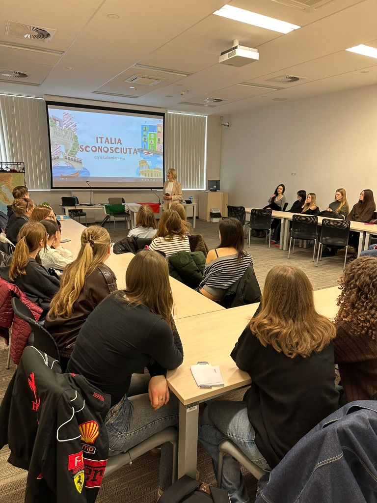 Uczniowie grup włoskich z kl. 3C i 3D wzięli udział w warsztacie interaktywnym „Italia Sconosciuta : między stereotypem a prawdą” na Dniu Otwartym UG (Wydział Neofilologii). Uczniowie wysłuchali prelekcji na temat Italii, mieli możliwość uzyskania bezpośrednich informacji na temat kierunku studiów, skosztowali tiramisù i nawet trzej uczniowie naszej szkoły wygrali nagrody w kahoocie na temat kultury Włoch.