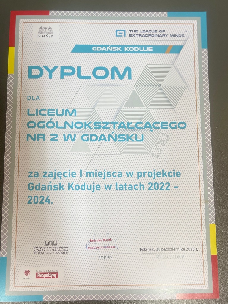 II Liceum Ogólnokształcące w Gdańsku zajęło I miejsce w rankingu gdańskich szkół uczestniczących w programie „Gdańsk koduje”!
