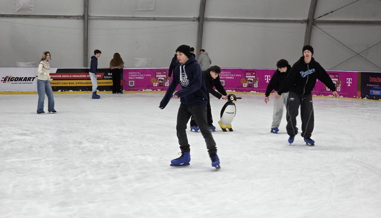 Wielu uczniów naszej szkoły wybrało się dziś na lodowisko, aby wspólnie szlifować łyżwiarskie umiejętności. Niezależnie od prezentowanego poziomu - dla niektórych to były pierwsze kroki na lodzie, dla innych utrwalanie umiejętności - wszyscy świetnie się bawili. To była doskonała okazja do integracji poza budynkiem naszej szkoły oraz do aktywnego spędzania czasu. Dziękujemy opiekunom za zorganizowanie wyjścia a uczniom za bezpieczną zabawę.