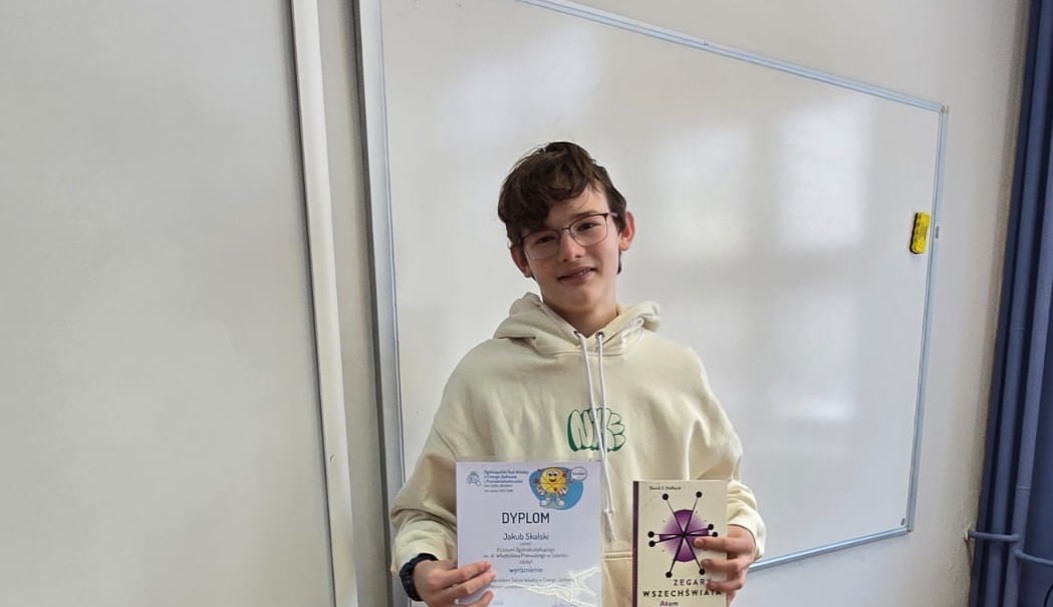 Z dumą informujemy, że uczeń klasy 1A Jakub Sklaski zdobył wyróżnienie w Ogólnopolskim Teście Wiedzy o Energii Jądrowej i Promieniotwórczości dla szkół średnich. Gratulujemy sukcesu. Trzymamy kciuki za sukcesy w kolejnych konkursach.